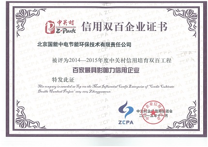 當前位置: 國能中電公司動態(tài)> 我公司被評為2014-2015年度中關(guān)村信用培育雙百工程“百家最具影響力信用企業(yè)”