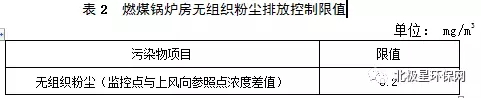2、燃煤鍋爐配套堆場(chǎng)應(yīng)采取封閉措施,燃煤鍋爐房無(wú)組織粉塵濃度執(zhí)行表2的規(guī)定。