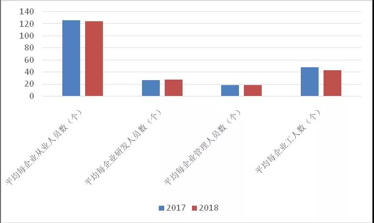 總體來看,我國環保產業從業人員呈現高學歷、高級技術職稱人員占比高,研發、管理及工程技術人才需求大的特點,反映出環保產業不同于傳統的工業行業,由于技術性和專業化程度高,對高層次人才的依存度較高。2018年,受經濟形勢及產業發展下行壓力增大影響,環保企業從業人員出現了一定程度的流失,企業從業人員數量同比下降1.9%,平均每家企業從業人員數量由126人減少到124人,工人數量下滑尤其明顯,同比下降12.0%。